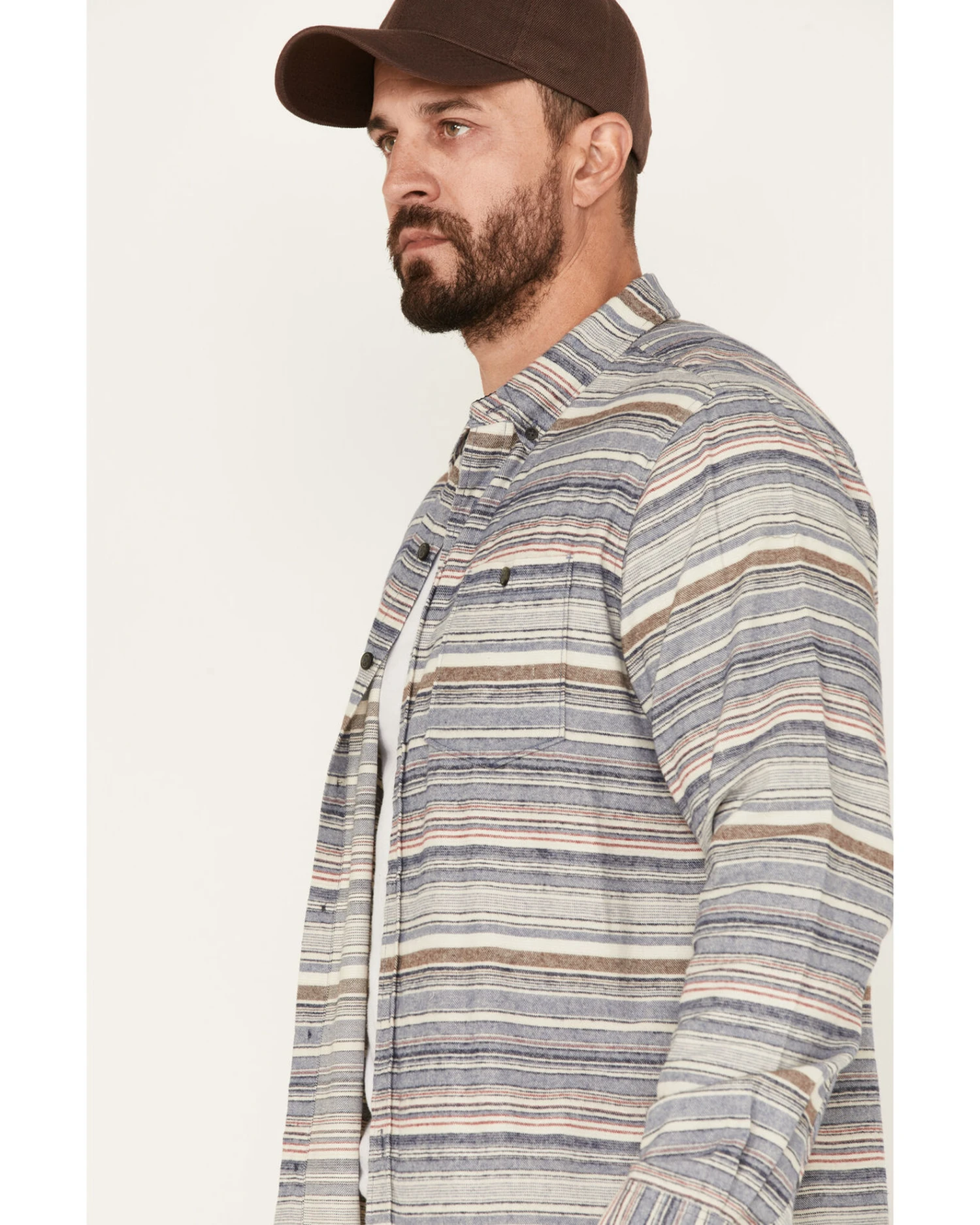 - Pastel brown, blue and white serape stripe design