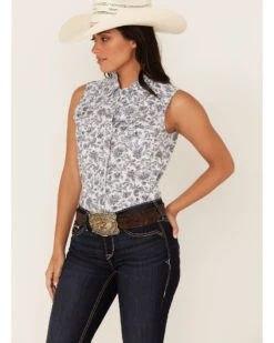 Rough Stock By Panhandle Women’s Floral Paisley Print Sleeveless Snap Western Core Shirt