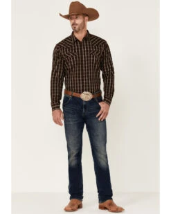 Moonshine Spirit Men’s Mahogany Plaid Long Sleeve Snap Western Shirt