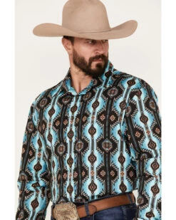 Rock & Roll Denim Men’s Geometric Stretch Long Sleeve Snap Shirt