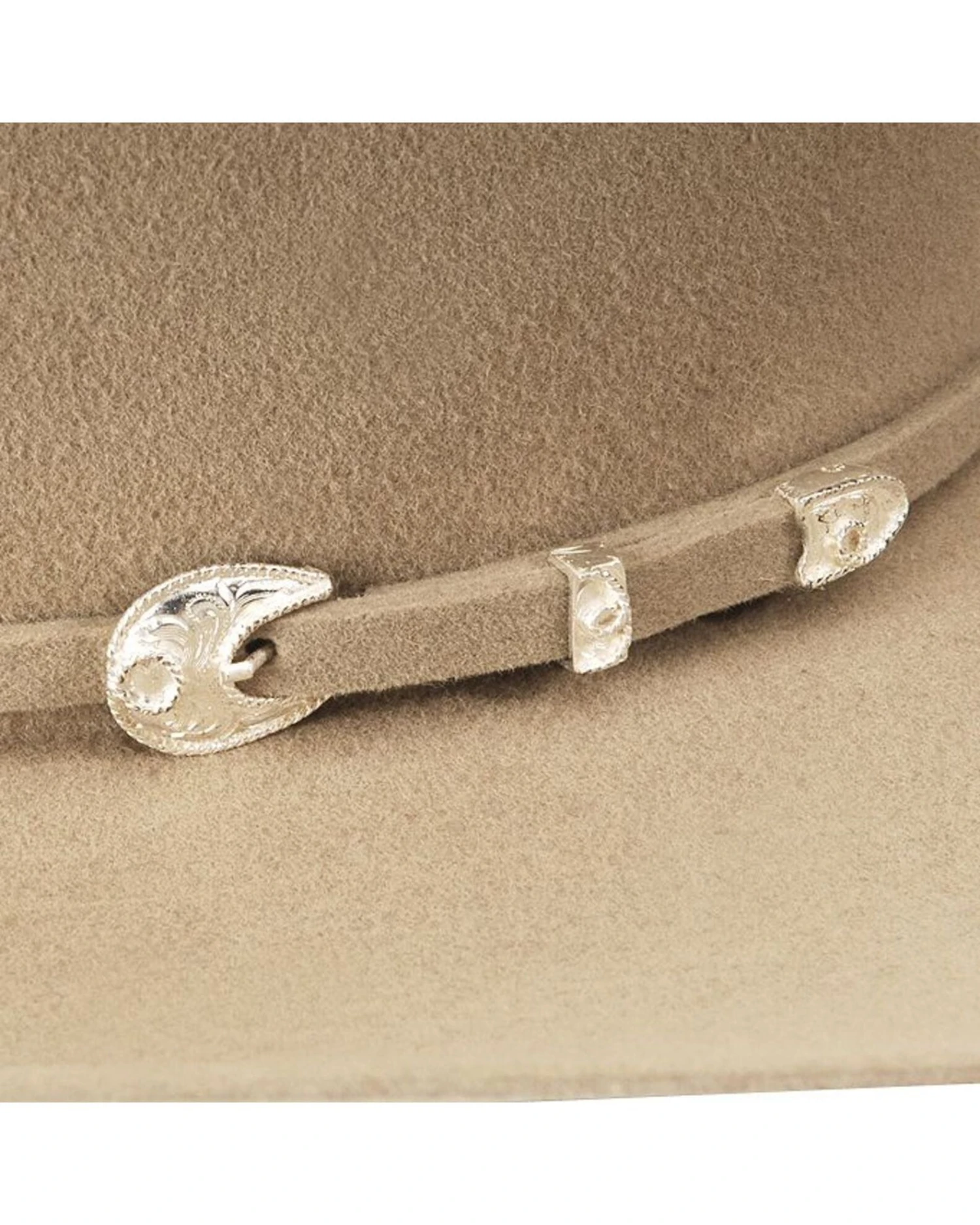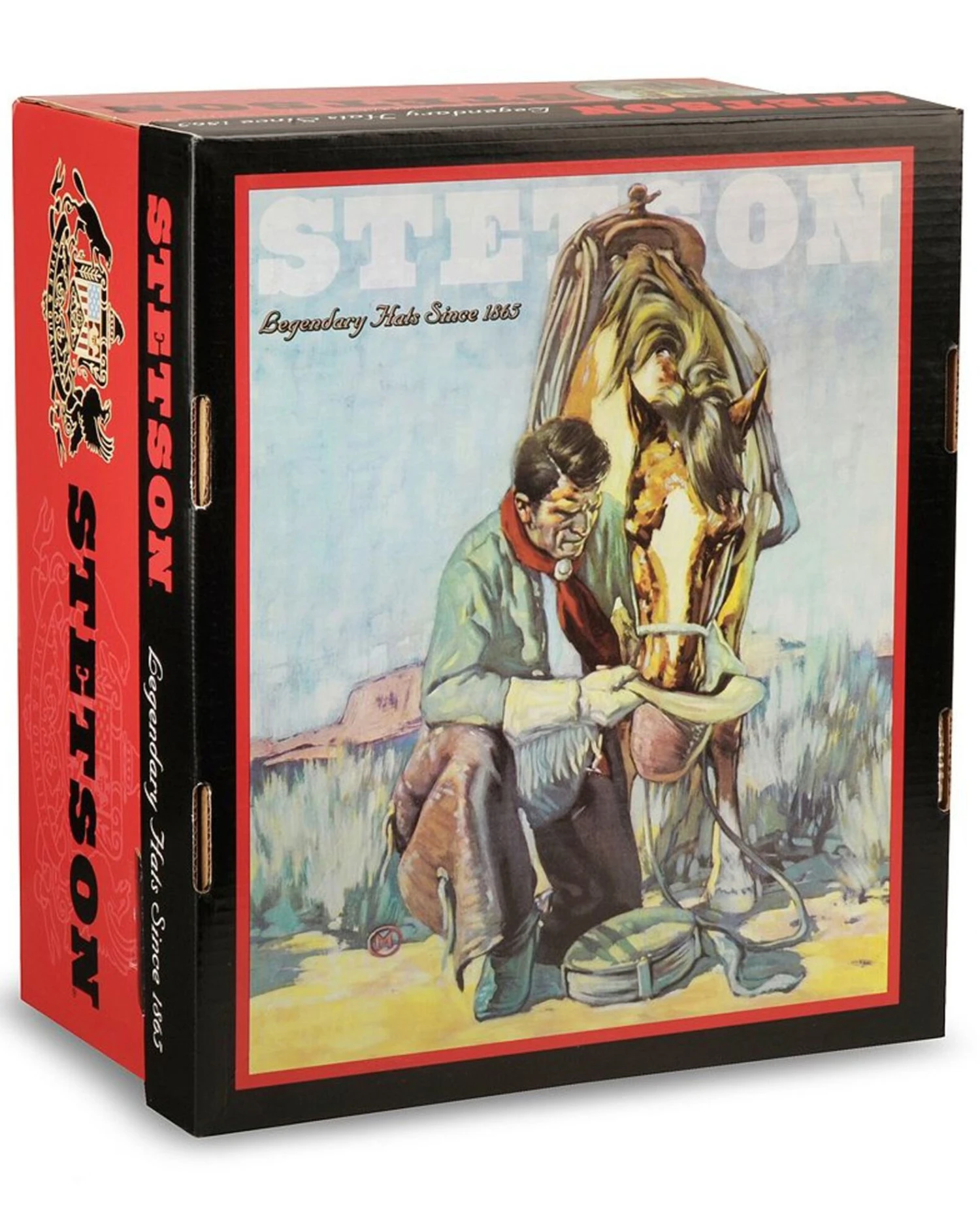 This Corral 4X felt hat is part of the Buffalo Collection by Stetson Hats. This hat for spending the day outside, whether you are riding or just enjoying the great outdoors. Made with 4X fur blend, a 4 1/4 ” brim and 4 1/4″ crown, this hat will keep the sun out of your eyes and your head nice and cool while you are working hard. The leather sweat band provides comfort and superior moisture wicking.