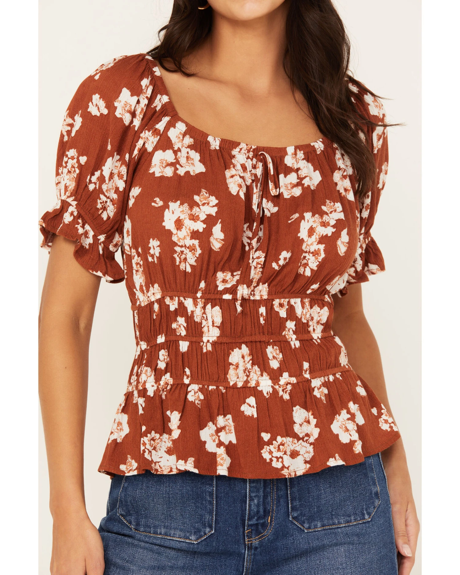 - Rust copper with allover white floral print