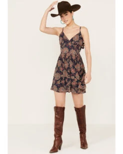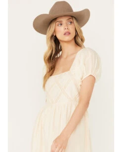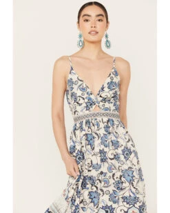 Angie Women’s Flutter Sleeve Macrame Insert Floral Print Dress