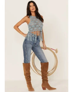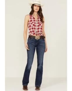 Stetson Women’s Floral Embroidered Medium Wash Long Sleeve Button Down Shirt