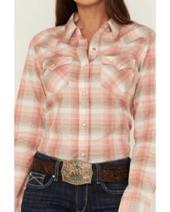 Wrangler Women’s Plaid Print Long Sleeve Western Pearl Snap Shirt