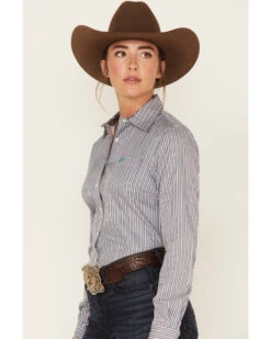 Cinch Women’s Striped Geo Print Long Sleeve Button Down Shirt