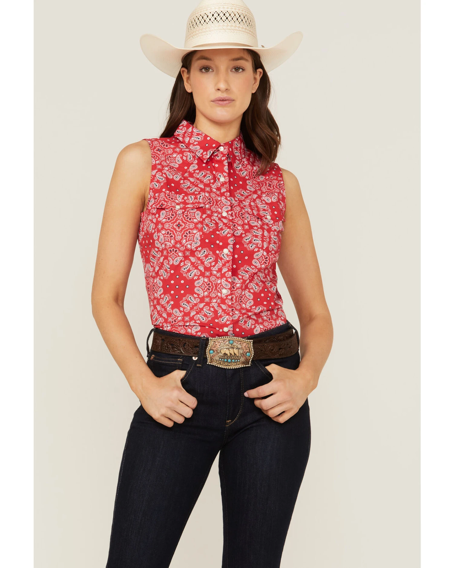 Be the first to review “Wrangler Women’s Americana Paisley Print Sleeveless Snap Western Shirt” Cancel reply