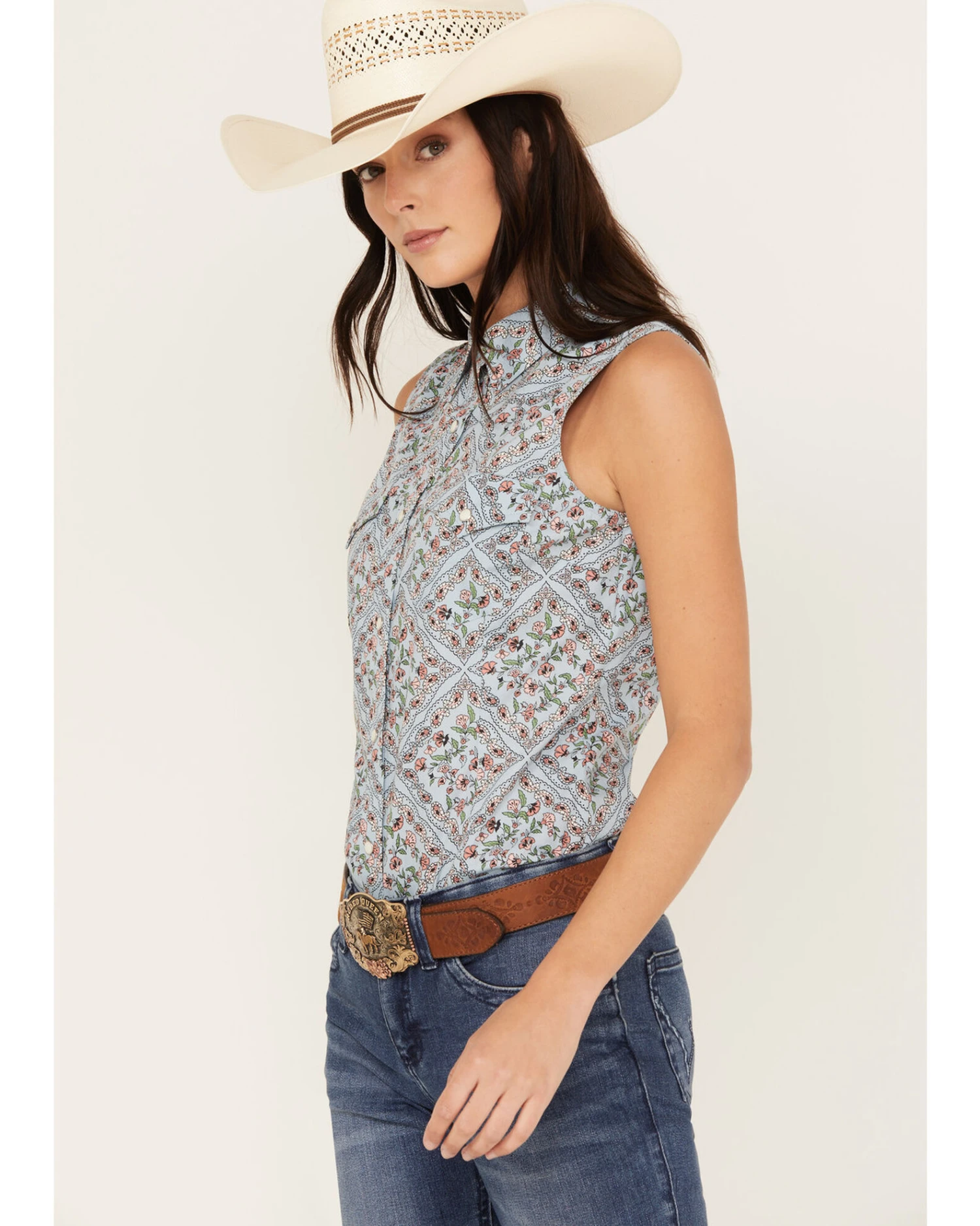 Be the first to review “Wrangler Women’s Floral Paisley Print Woven Sleeveless Snap Western Shirt” Cancel reply
