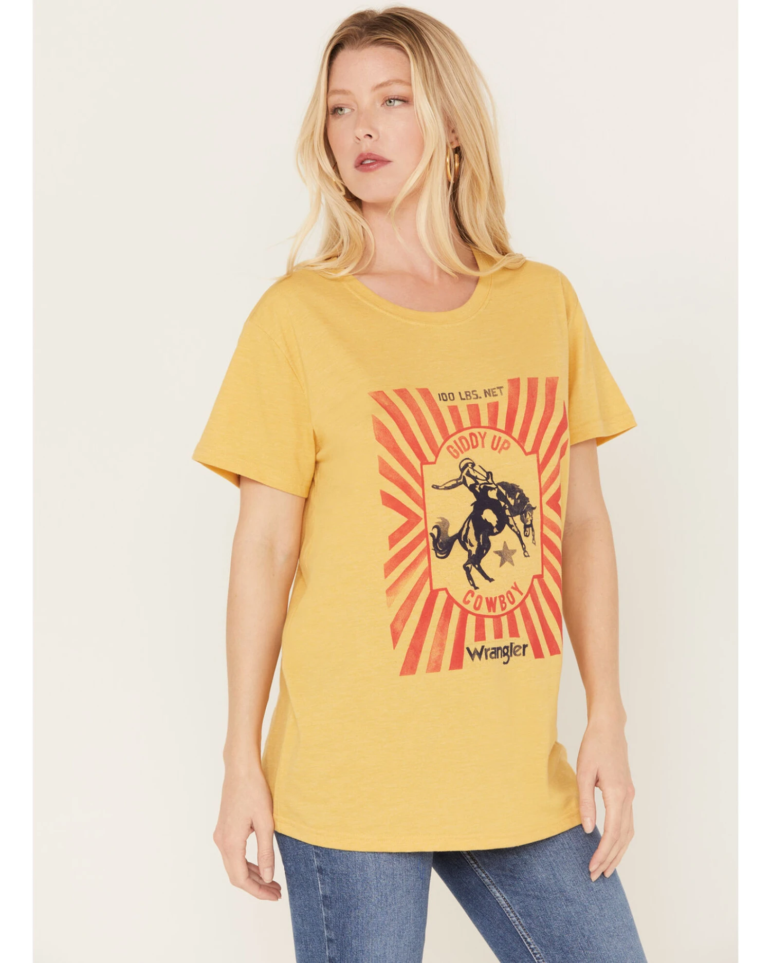 - Giddy Up Cowboy graphic with Wrangler logo on front