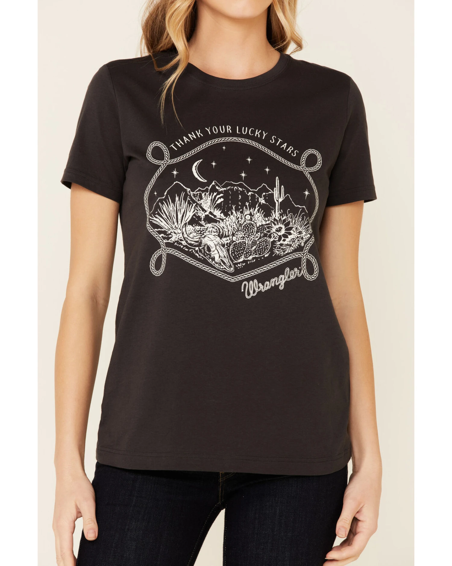 Be the first to review “Wrangler Women’s Thank Your Lucky Stars Desert Graphic Short Sleeve Tee ” Cancel reply
